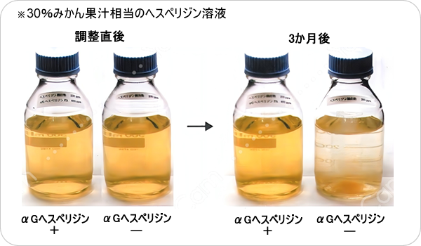 ヘスペリジンは様々な柑橘類に含まれているフラボノイドの1種で、温州みかんでは中果皮に100gあたり3,800mgと多く含まれています1)。水溶性が低く、みかんジュースやみかん缶詰とのシロップの保存中にみられる沈殿物の原因となっています。